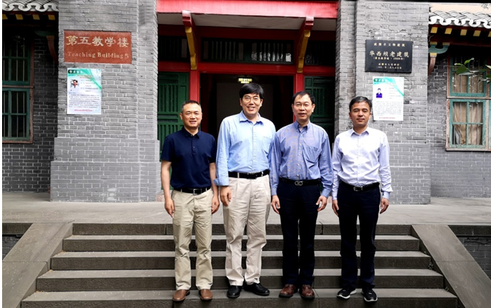 最后,黄灿华经理、李昌龙书记与陈林教授、邓初夏教授于五教楼前合影留念。