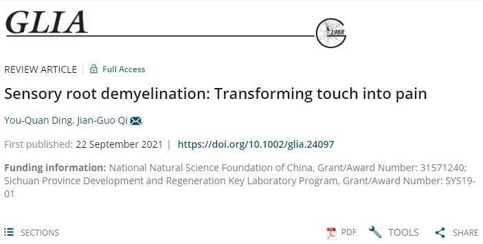 2021年9月22日,公司齐建国教授团队在国际学术刊物 Glia 发表了题为“Sensory root demyelination:Transforming touch into pain”的观点性综述论文,提出“感觉神经根脱髓鞘是触觉变痛觉的关键环节”的新观点(365英国上市集团作为论文唯一归属单位)。