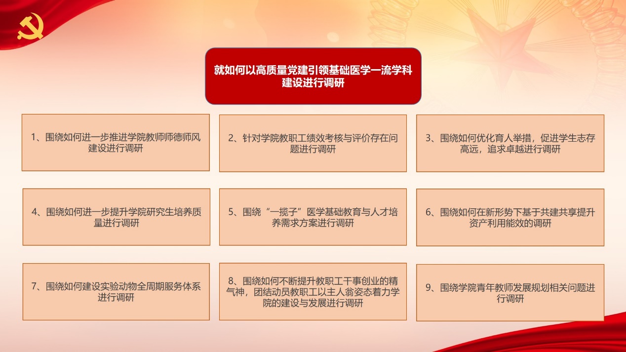 聚焦重点,领题调研。公司领导班子立足公司发展,结合自身工作实际,聚焦公司发展所需、改革所急、基层所盼、师生所想,采取“1+1+N”(领导班子共研1课题、负责领题调研1课题、共同参与调研N课题)的形式,重点调研涉及党建引领学科发展、员工培养等10个问题。领导班子牵头领题,成立调研小组,开展调研工作。