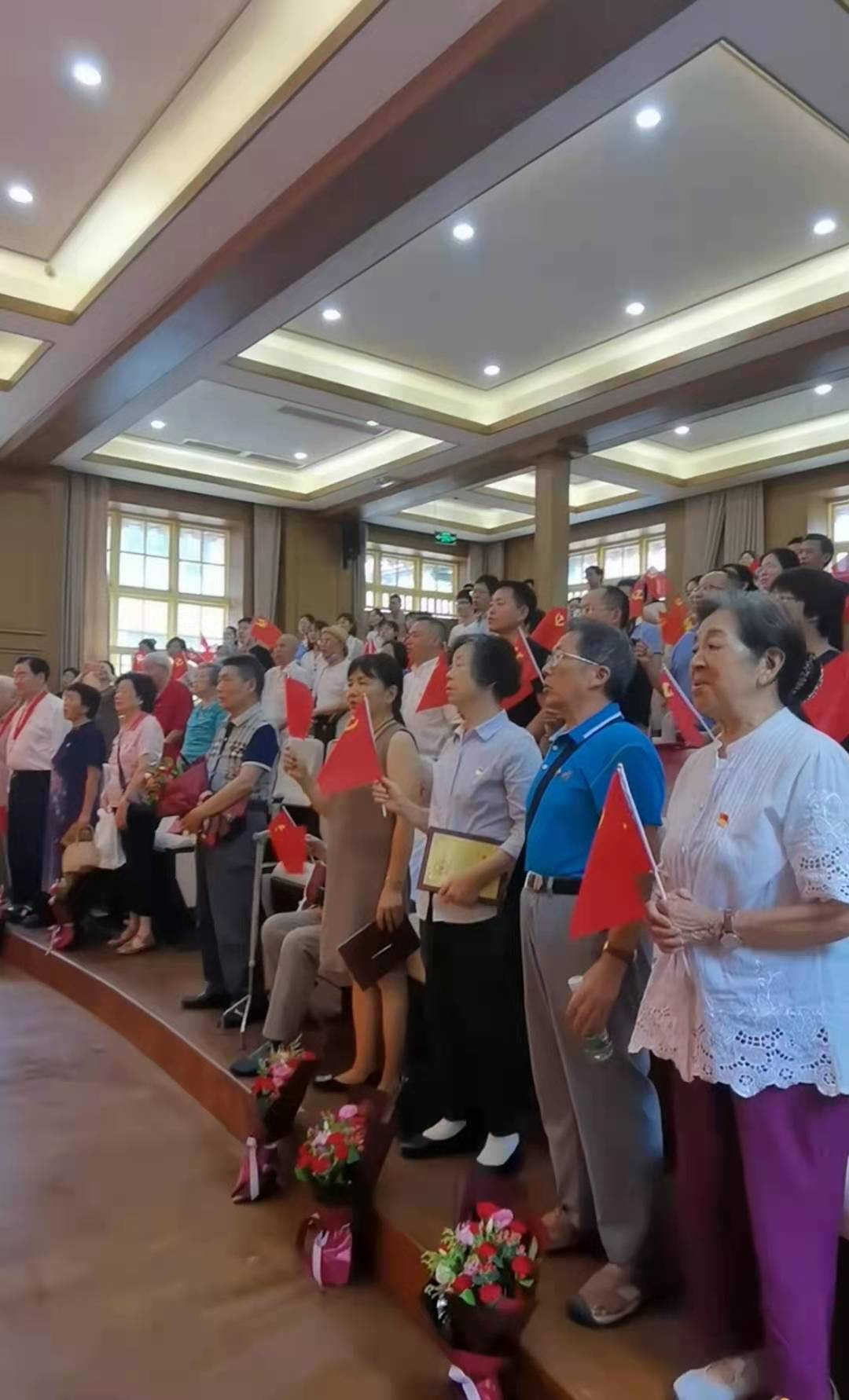 党课报告后,党委书记李昌龙向党龄40年以上的党员同志颁发荣誉证书,员工代表向老党员同志敬献鲜花,公司党龄40年以上共40人,其中党龄50年以上27人。