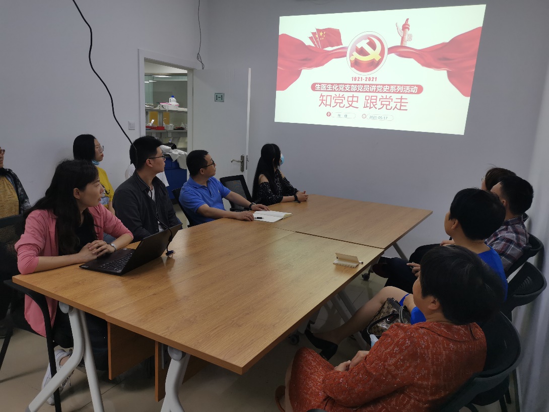 5月17日,公司生医生化党支部在生物医学工程会议室进行了“生医生化党支部党员讲党史系列活动”的第二次学习。本次学习由支部宣传委员林佳同志以“学党史、跟党走”为主题做辅导报告,支部书记沈阳同志主持,支部党员同志及生医所有研究生参加。