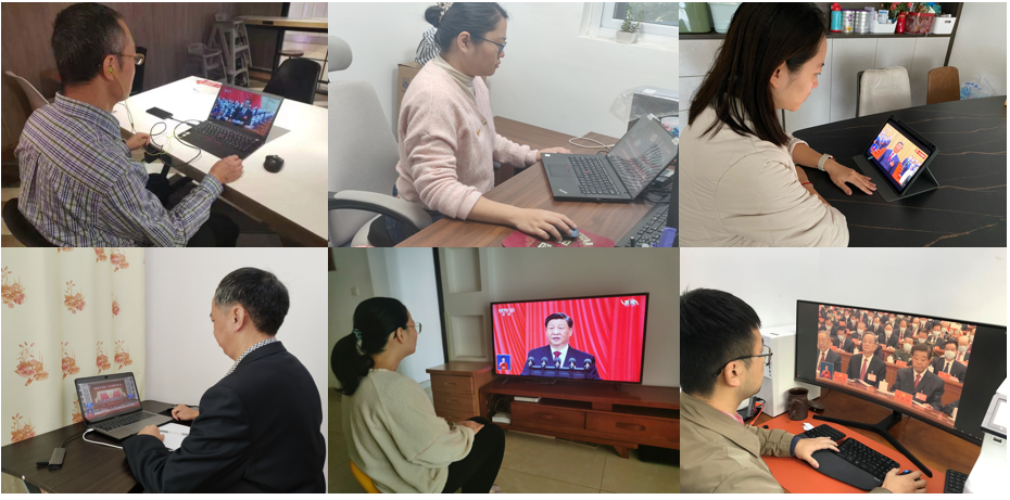 公司全体在家院领导、两委委员、党支部书记、师生代表30余人在华西第五教学楼二会议室集中收看了大会直播盛况,其他师生员工在公司党支部、二级单位、团委的组织下采用电视、广播、网络、手机客户端等多种形式积极踊跃收看收听直播,认真学习讨论党的二十大报告。