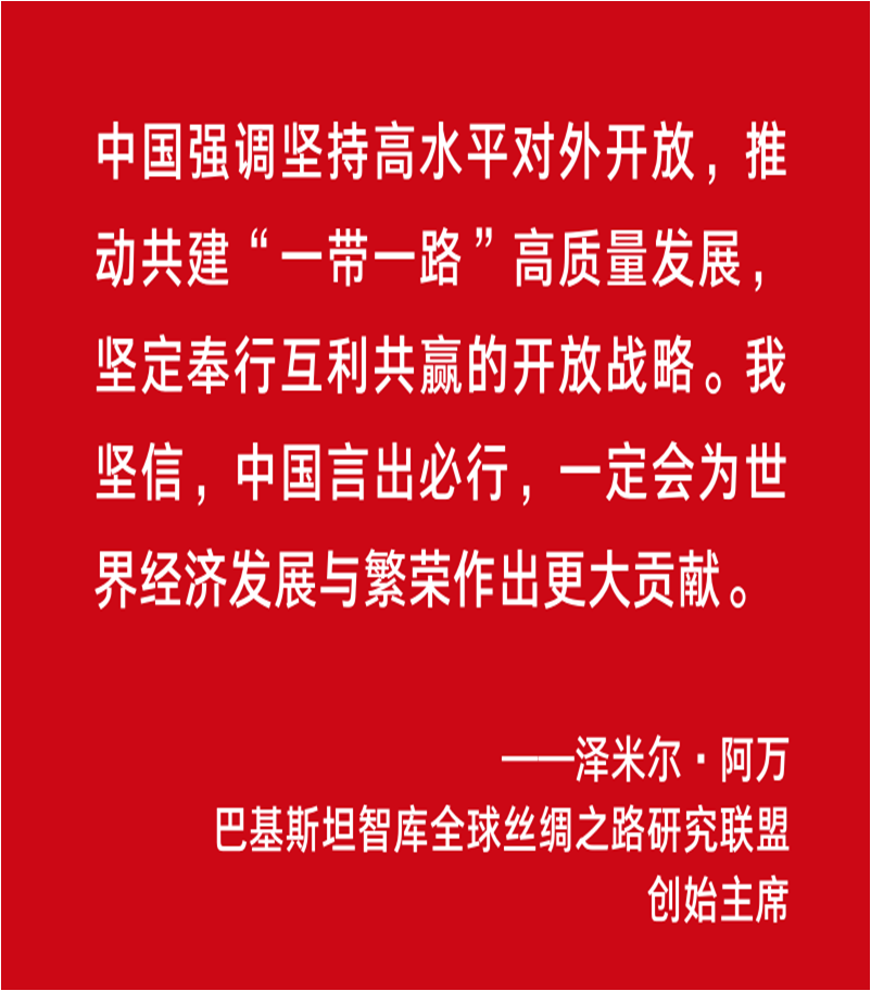 巴基斯坦智库全球丝绸之路研究联盟创始主席泽米尔·阿万在实时收听了中共二十大报告后说,中国强调坚持高水平对外开放,推动共建“一带一路”高质量发展,坚定奉行互利共赢的开放战略。“我坚信,中国言出必行,一定会为世界经济发展与繁荣作出更大贡献。”