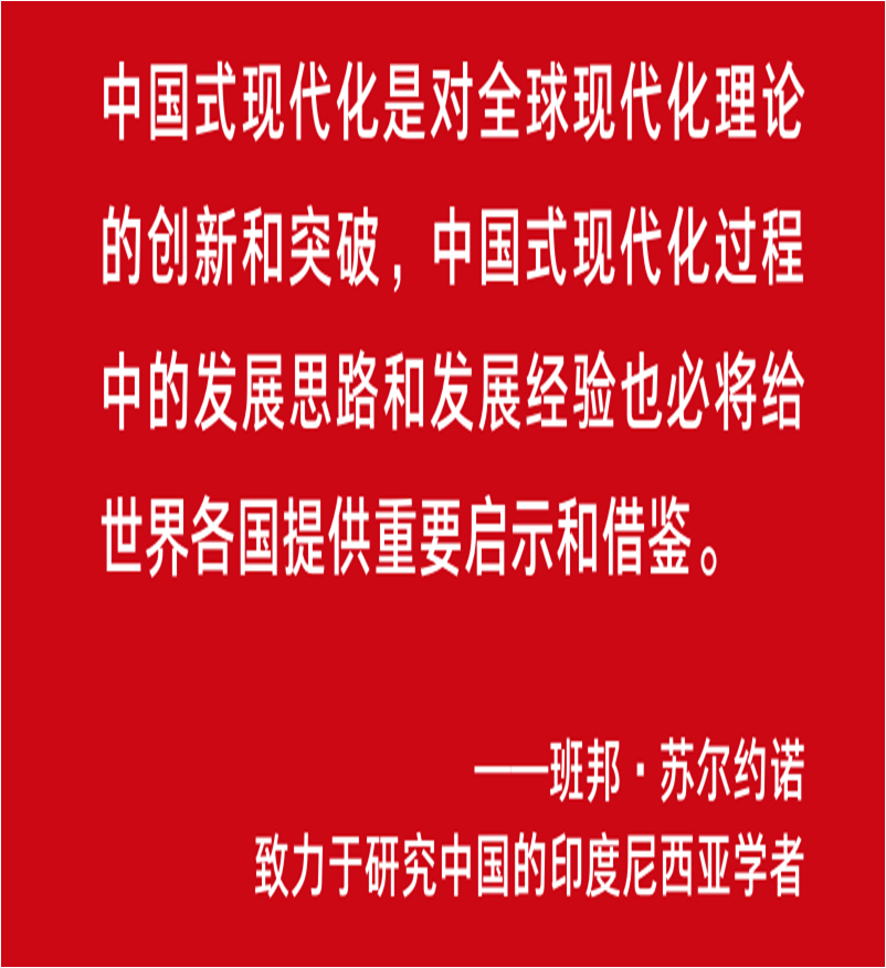 这位从上世纪80年代起就致力于研究中国的印尼学者曾多次到中国实地调研并目睹了中国的沧桑巨变。他认为,中国自主探索适合自身国情的现代化道路,其世界意义在于,“中国式现代化是对全球现代化理论的创新和突破,中国式现代化过程中的发展思路和发展经验也必将给世界各国提供重要启示和借鉴。”