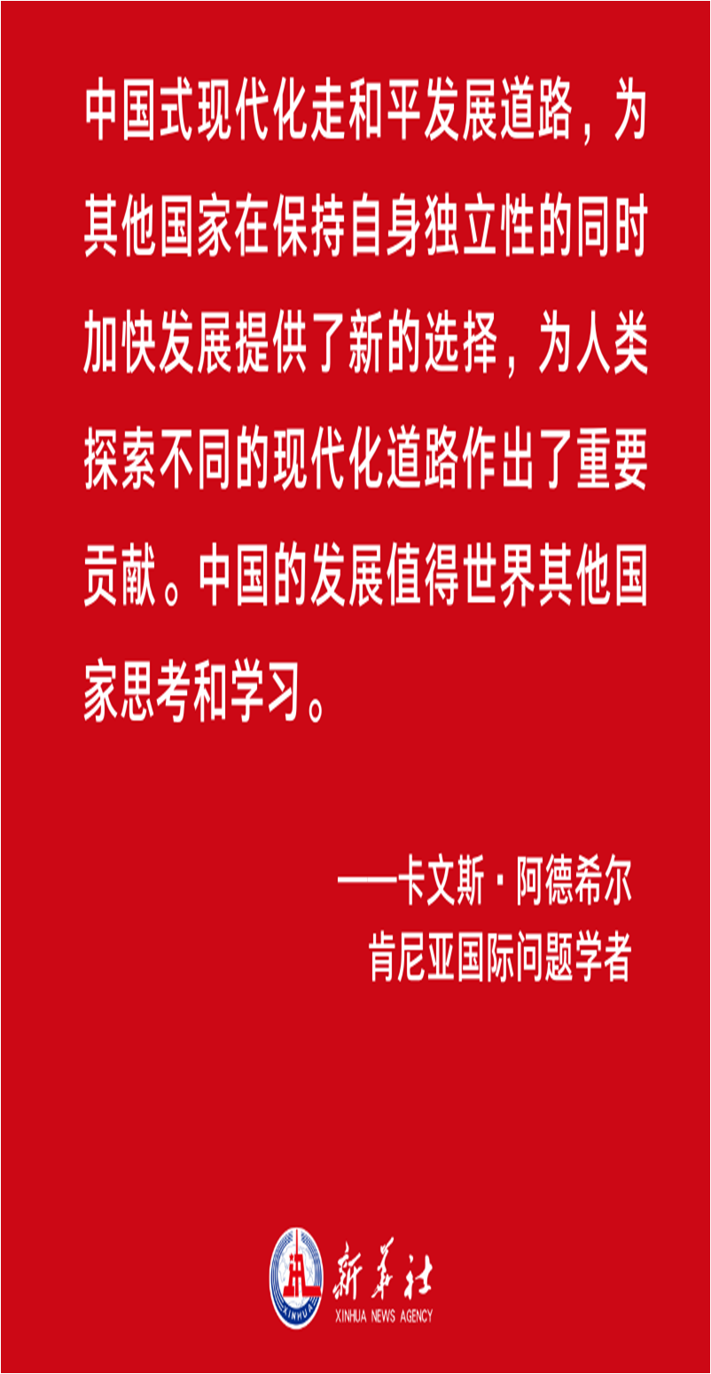 人类走向现代化的历史进程中,曾演绎过“国强必霸、彼此征伐”的零和之路,而中国式现代化走的是一条“文明互鉴、美美与共”的共赢之路。从二十大报告中,肯尼亚国际问题学者卡文斯·阿德希尔看到了中国道路胸怀天下的和平底色。他指出,中国式现代化走和平发展道路,为其他国家在保持自身独立性的同时加快发展提供了新的选择,为人类探索不同的现代化道路作出了重要贡献。“中国的发展值得世界其他国家思考和学习”。