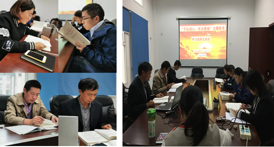首先由刘学旭、曹永实、何学令、张晓梅四位党员同志带领全体党员同志分段领学《习近平关于“不忘初心 牢记使命”论述摘编》中第一至第六部分。带领大家一起回顾中国共产党员的初心与使命,用时代中国特色社会主义思想武装全党;坚持理想信念,始终是共产党人安身立命的根本;把政治建设摆在首位,不断增强“四个意识”坚定“四个自信”、做到“两个维护”;坚持以人民为中心,把群众观点和群众路线深深植根于思想中、具体落实到行动上。