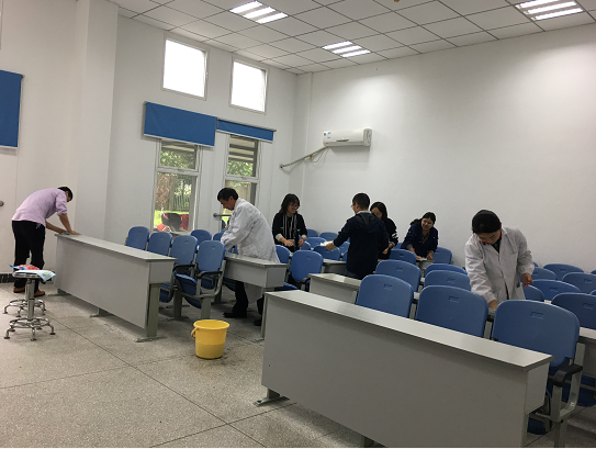 最后,在支部书记刘学旭同志的号召和带领下,开展“营造优美教学环境,净化教学设施”践学自愿服务活动,全体党员都非常积极的参与到活动中来,在大家的齐心协力下中心一楼教室焕然一新,窗明几净,用更好的状态去迎接本学年第17期入室培训。
