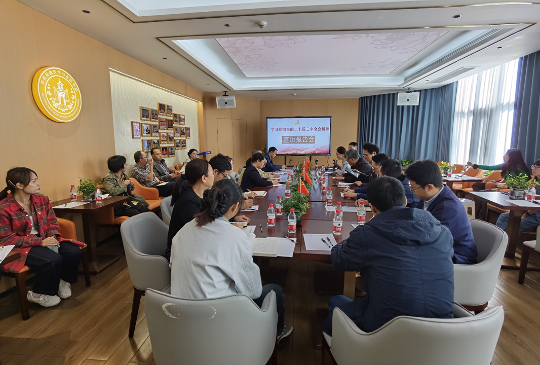 会上,范逢春教授从党的二十届三中全会的主题切入,结合实例和数字,生动阐述了进一步全面深化改革的重要性和必要性、指导思想、总目标和原则。并结合实际工作,详细解读了党的二十届三中全会从经济、政治、文化、社会、生态文明、国家安全等方面的改革部署。强调要始终坚持党的领导,要更加紧密团结在以习近平同志为核心的党中央周围,高举改革开放的旗帜,奋发进取,为全面建设社会主义现代化强国努力奋斗。同时表示作为高校要在构建支持全面创新机制体制方面发力,认真落实全国教育大会精神,朝着建成教育强国战略目标扎实迈进。
