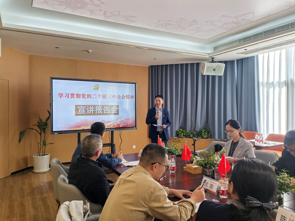 为深入学习宣传贯彻落实党的二十届三中全会和全国教育大会精神,公司于10月28日下午在华西校区逸夫楼职工之家开展了学习党的二十届三中全会和全国教育大会精神宣讲报告会,特邀学习贯彻党的二十届三中全会精神省委宣讲团成员、公共管理公司范逢春教授作专题报告,公司领导班子成员、两委委员、专职组织员、教研室主任、支部书记、科级干部、师生党员代表、党外人士代表共四十余人参加会议,会议由公司党委书记李华主持。