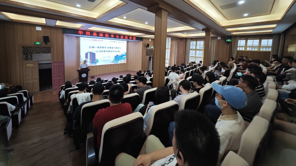 5月30日下午,公司2011届法医学专业本科优秀员工、上海市公安局刑侦总队刑侦中心七室副主任杨帆同志,应邀回到母校,在华西五教报告厅为师生们作了一场题为“扎根一线担使命创新奋斗践初心——让法医更好服务司法实践”的专题讲座。讲座由公司党委副书记兼副经理罗海玻主持。