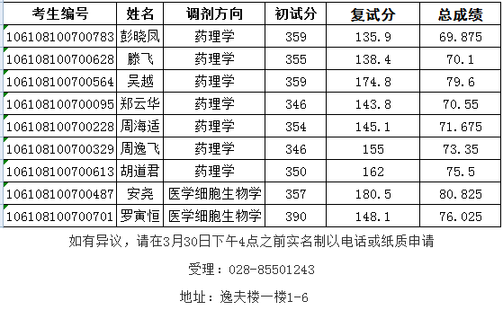 如有异议,请在3月22日下午5点之前实名制以电话或纸质申请 受理:028-85501305 地址:逸夫楼一楼1-3